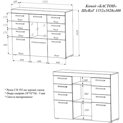 Комод Бастон (Эра) продается в интернет-магазине mebel-online-staryj-oskol.ru по цене 13 534 руб. Есть доставка по Старому Осколу и Белгородской области. Возможность подъема на этаж и сборки уточняйте у менеджера по телефону 8(800)505-27-11.